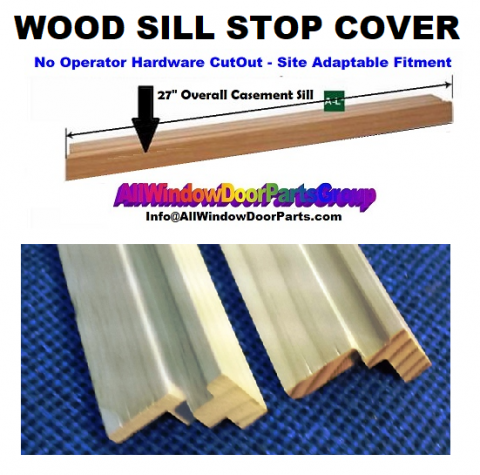Casement Window Wood Sill Stop Cover Component. Refurbish, Rebuild, Repair, Fix or Upgrade Your Old Wood Casement Windows. This original milled style part covers the operator gear assembly and this sill stop cover is milled and sold in 27" Lengths and comes to you without the "gear face cutout" for the operator - so you can utilize on any number of models, any handing and do the operator field fitment and cutout yourself as required for your project. Normal milling is from clear grade pine or other top-grade stock. Made In USA and shipped nationwide. Onsite fitment for many brands like - Andersen, Arcadia Better-Bilt, BF-RICH, Burcon Capitol, Caradco, Carlite Craftline, Crestline, Croft Eagle, EntryGard, Gapco Gerkin, Geze, Hurd Kolbe, Lincoln, Malta Norco, Pennco, PGT, PlyGem Pozzi, Quaker, Rivco, SealRite, Silverline Simonton, SNE, Thermalgard Traco, Truth, Weather-Shield Wenco, Windsor, Ply-Gem and others.