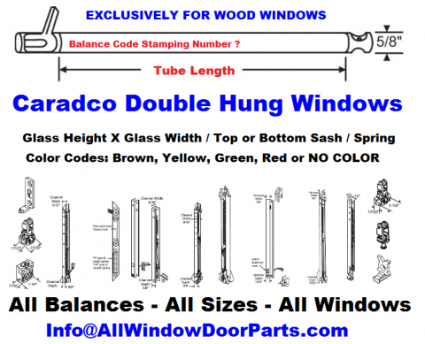 All Sash Balances For Old Caradco Wood Windows; Double Hung and Single Hung;  We're All Your Window Balance Needs! Always replace balances in pairs; We have all sizes, all series, all styles, all models, all replacements and all stamping numbers - for all types, all shapes, all colors, and all sizes and lengths of window balances for single hung and double hung windows; tilting; Non-Tilt; Spiral Balances; tube balancers - for all series of Caradco Wood Windows - and we also have Cardco Sash Replacement Kits for Cardco Casement Windows.