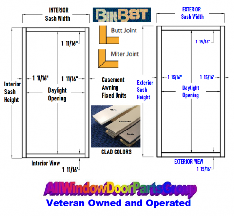Bilt-Best OEM Window Replacements - Our units are as close to the OEM window sash replacements. These sashes are made by the same people that originally produced the original Bilt-Best windows when they were first built. These replacements match the exact specifications of the original units including size, thickness, tint, and other technology. Casement or Awning Style with Aluminum Clad Sash and Standard Insulated Clear Glass with the BUTT JOINTED STYLE - Standard Aluminum Clad Exteriors in Bronze, White or Sandstone Finish Color Exterior Clad.