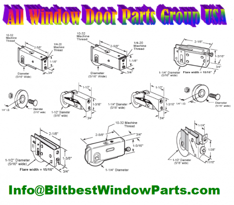 Patio screen door and patio sliding door rollers, wheels, tracks and covers. Find your exact replacement parts for whatever brand you have - Guardian, Andersen, PGT, JeldWen, Prado, Wright, Emco, Juralco, Larson, Marvin, BiltBest, Integrity by Marvin, Peachtree, Pella, Acadia, Acorn, Alenco, Velux, Roto, Anderson, Benchmark, BetterBilt, Certainteed, Columbia, Craftline, Crestline, Crossley, Krestmark, Lousiana Pacific, Metal Industries, Milco, Caradco, Milgard, National, Norandex, Oldach, Outlook, ThermalGard, Weathercraft, Wenco, Truth, EntryGard, Papaiz, Quaker, Hurd, BuiltBest, Lincoln, Shelter and many others: Prices starting at $ 12.88 Per Unit and Up ..