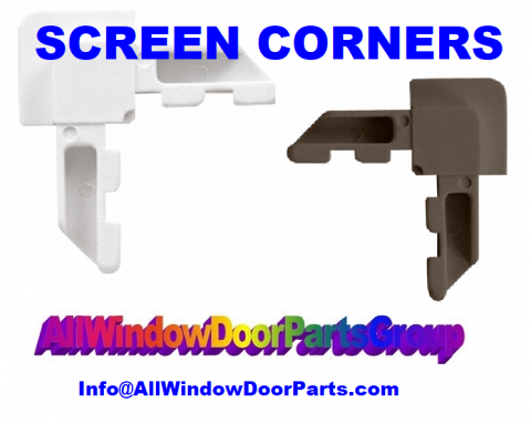 Plastic Screen Corner Square Cut - WHITE OR BRONZE AS SHOWN - 100 PER PACKAGE - Unique screen corner design, screen corners in BRONZE OR WHITE ONLY - Catalog Number, C2L-CL-AW-100. The window screen frame dimensions which this corner fits is 3/8" / 10 mm thick frame and has a 5/16" / 7.9 mm wide lip to match the frame. Eliminate any need for miter cutting of the screen frame.