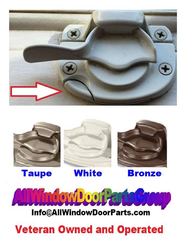 Window Sash Lock and Keeper for Tilt Style Double Hung Window - Old Truth / Part # 41131 - CAV Designations - Standard Finishes in the Taupe, White or Bronze. Other finishes are available elsewhere on this site in Antique Brass, Satin Chrome, ORB (Oil Rubbed Bronze), ORBZ PVB, Satin Nickel PVD and Polished Chrome.