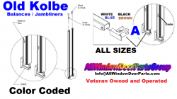 Kolbe Double Hung Window Balances, available in all sizes and for all sash weights. These are the old style, color-coded clutches as Regular (White Clutch), Heavy Duty (Black Clutch), Extra Heavy Duty (Blue Clutch), Super Heavy Duty (Brown Clutch). Sizes range from 16" to 42" and prices begin at only $ 97.77 PER PAIR. Specify Top or Bottom Sash, and the CLUTCH COLOR AS INDICATED.
