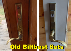 These are the original style door handle sets | Wood and Clad Door BiltBest Door Hardware - Active; NOTE: Only available in the Oil-Rubbed Bronze Finish - Very "limited quantity" - Wood and Clad Door Hardware Active Handle Set Replacement. Replacement Door Handle Sets for your old Biltbest Wood and Clad Doors, Inswing and outswing style french doors, Arch Top Biltbest Doors;
