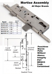 Replacement Hardware for Peachtree Patio Doors - Single Point Gear Box, 1 3/8" Backset, This door lock mortise contains a single latch and deadbolt assembly - Note: This lock mortise does not fit and cannot be used to replace the multi point Peachtree Door system parts. The "backset" is measured from the latch edge of the mortise to the center of the handle; Parts are non returnable so be sure to check this before placing a special order.