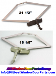 Single Pull Roto Gear Norco Awning Window Crank Style Operator - TWO AVAILABLE MODELS - 16 1/8"  or  21 1/2" width as Shown; Used on many Norco awning windows. The single pull operator is for average size windows (up to 28" wide);