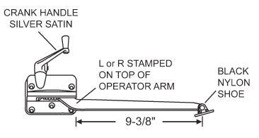 Andersen Casement Window Silver Satin 9 3/8" Arm Sill Mounted Casement Crank Operators | Right or Left Handed