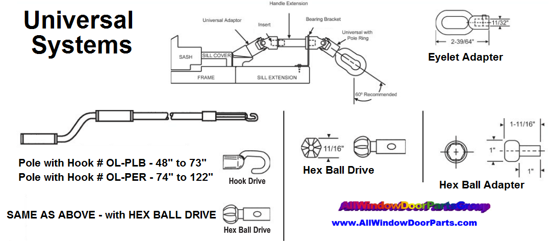 Must be used to drive an operator with a Hex Ball Drive Adapter #BB-OE.662 applied. Used to operate skylight operators in vaulted ceilings. These rigid anodized aluminum poles feature free-turning ABS hand grips.