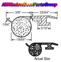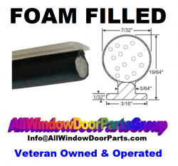 T-Slot Weather Strip, 100' Foot Rolls, Black Slide-In-Style, 3/16" Base, Foam Filled Bulb Type Weather Strip, T-Slot Slide In Style, Foam Fill Bulb Type | T-Slot Weather Strip Slide-In-Style, 3/16" Base, Foam Filled Bulb Type - This is a foam-filled bulb weatherstripping / .187 X .135 Diameter Bulb, 7/32" Diameter.