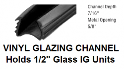 GRAY GLAZING BOOT, VINYL , WV-OBTT-CR100 GRAY, Description: GREY Vinyl Glazing Channel ( Boot ) for 5/8" OD Insulated glass units; Item Minimum is PER ROLL of 100 Lineal Feet - COLOR GRAY ONLY. For Easy Installation of Insulated (IG) Glass Units; This gray glazing vinyl is 100% extruded virgin vinyl used to repair, re-glaze windows. The channel depth of the vinyl is 7/16" and it requires a metal opening of 5/8" ( see diagram etc.)
