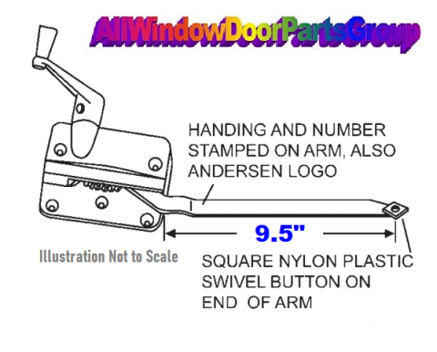 Andersen 9 1/2" Sill Mounted Casement Operator as Shown in Illustrations - BRONZE ONLY - Specify "as shown" or "opposite" in the comment section at checkout.