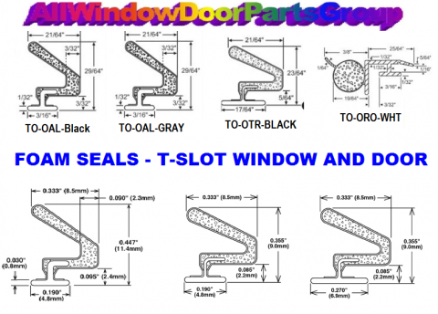 BLACK Q-LON WEATHERSEAL # TO-OTR-BLACK | WEATHER STRIP PARTS AND SEALS: Foam Style, T-Slot Design Compression Seals, Black Qlon Style Seals for windows and doors .. durable, UV resistant, polyethylene clad seals with a permanently bonded resilient urethane foam which provides outstanding seal against air, water, wind, snow penetration. This listing is for only one style as shown and outlined; Lower pictures show some similar styles available on the site or by special order only; Product Description: T-Slot Type Weatherstripping; Sold in minimum orders of 100' Lineal Foot Rolls.
