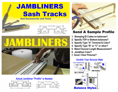 ORDERING REPLACEMENT JAMB LINER PAIRS - Double Hung Sash Carrier Track Systems - are also known as plastic jamb tracks, Units come complete with all balance spring unit assembly's with spring balance weights based on sash sizes as entered below. These match to many original Double Hung Windows - SEE PICTURES etc. and note balance springs and terminal ends etc.