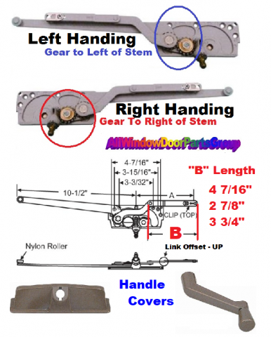 Old Style Casement Operator Replacements - All Sizes - All Colors for Old Kolbe/Kolbe, K&K Windows for all old style crank casement windows with cranks and roto-gear. Old Entry Gard Dual Arm Operator for almost effortless operation of your old casement and awning windows. If a color is selected when ordering, it will be shipped complete with New Crank Handle, Cover Stud Bracket and Screws. There are three different link measurements for this operator (see diagram below).