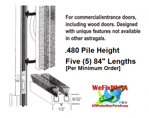 Commercial Entry Exit Door Weather Strip Pile Seals Astragal Seals Meeting Stile Weatherstrip