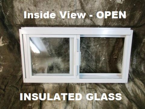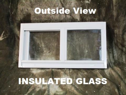 See the Drop Down Menu .. Combine, Mix and Match Sizes. Horizontal Slider with all aluminum frames and will last for many years. Custom Sizes Available.  Complete with weep holes, locking latches and no screens. Mill Finish ( or White ) with INSULATED GLASS ( No Fogging Or Sweating )  "dual pane" units .. Standard Size Options Below. ( Inside Window Frame Measurements ) - 24" x 12" , 30" x 12' , 36' x 12' , 42' x 12" , 48" x 12"  - and BigDaddy's Window How To PDF of ideas and other things is included with every order.