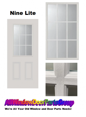 Clear Nine Lite Glass and Frame Kit (Half Lite), as Shown - Frame size 22" x 38" (NARROW SIZE), Standard Clear Glass