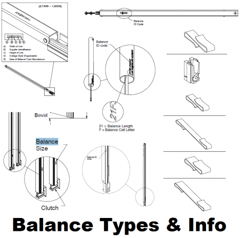 Don't get too confused .. there are numerous types and styles of window balances [balancers] - Spiral Balances, Channel Balances, 85 Series, Spiral Balances & Tube Balances, 83 Series Tube Balances & Spiral Window Balances .. 70 Series Window Spring Balances & Spiral Balances .. 76 Series Tape, Tube and Spiral Window Balances, 72 Series Block & Tackle Window Balances and Spiral Balances, 74 Series Window Spring Balancers, 75 Series Constant Force Balances, 88L Series Channel Window Balances, 89 Series Caradco Window Balances, Peachtree Window Balances - and different balances for Oldach Windows, BiltBest Windows, and ALL BRANDS of Windows and Doors - OEM Replacements for: ACADIA, ACORN, ALENCO, ANDERSEN, ANDERSON , BENCHMARK, BETTER-BILT, CERTAINTEED COLUMBIA, CRAFTLINE, CRESTLINE, CROSSLY, KRESTMARK, LOUISIANA PACIFIC, MARVIN, METAL INDUSTRIES, MILCO, MILGARD, NATIONAL, NORANDEX, PEACHTREE, PELLA, SLIMFOLD, STANLEY, THERMALGARD, WEATHERCRAFT, WENCO and others too - 57 and 58 Series, 60 Series, 60P Series, 61 Series, 62 Series, 62A Series, 62FC Series, 62-716 and 62-766 Series, 64 Series and custom blances as well.