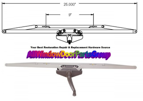 Double Pull Roto Operator - Your AllWindowDoorParts GROUP-USA is all about those old door and window hardware parts nationwide. Especially all these old Awning Roto-Gear Units and Awning Window Roto Crank Units with Dual Arm, Scissor Type, Double Hook Actions -- Used on larger awning windows (28" wide or more). Available in bronze or gold color. Shipped complete with #11454 crank handle, two sash hooks and screws. Shipped complete with # BB-PP.454 crank handle, two sash hooks and screws.