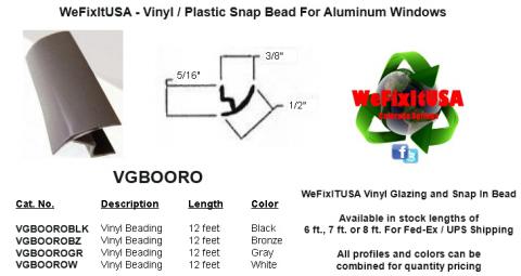 Built Best Window Glazing Bead Parts Supply VGBOORO - Window and door glazing bead and weather strip parts, snap-in-bead, images, free research and ID help, spline, strips of profiled wood or vinyl used to hold the glass in position in the window sash. PDF Glossary Guide, terminology, dimensions and measurements, Glazing Bead for windows of all types - Casement, awning, single and double hung, aluminum, vinyl and wood windows - all obsolete and out-of-production brands.