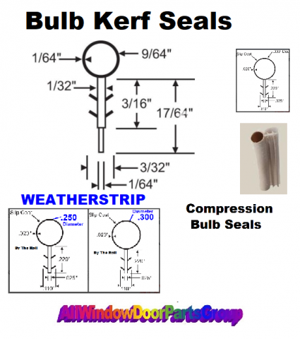 ONE HUNDRED FOOT (100') ROLLS - Kerf Insert Type Bulb Seal Weather Strip For Windows - 1/8" Diameter / 9/64" Actual Bulb Diameter. Window Weather Strip, Model # TO-PLO in White or Beige Colors. Window Weather Strip Replacement Parts for older Double Hung / Single Hung / Casement and Awning Windows, Horizontal Sliders. This is a special purpose compression bulb seal weather-Stripping.