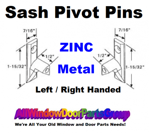 Sash Cam Tilt Pivot Pins | Left and Right "handed type" in Zinc Metal as shown. Cam Pivot Tilting Wood Clad Sash Tilt Pivoting Cams / PINS, Plastic Style, Black and White. Right Handing and Left Handing - Minimum Order of TEN (10) PER PACK. Five (5) Each L/H and Five (5) Each R/H.