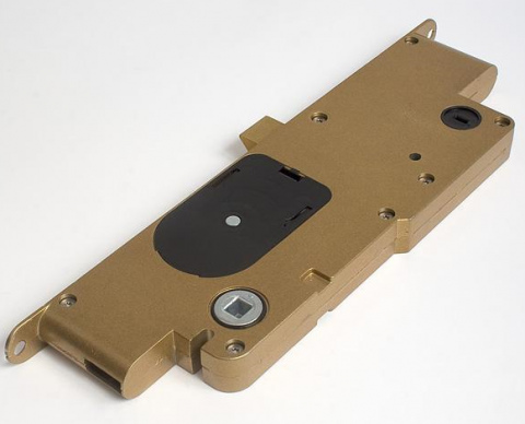 Peachtree Citadel swing patio door multi-point center mortise lock assembly; Mortise is reversible for swing direction and features a panic release. The reverse direction procedure is accomplished by removing the side plastic covers and swapping the internal cams, side to side. The lock bolt can also be reversed, extend the bolt and slide off the bolt base. If you need other parts email through the contact page; DO NOT TAKE THE MORTISE LOCK BOX APART.
