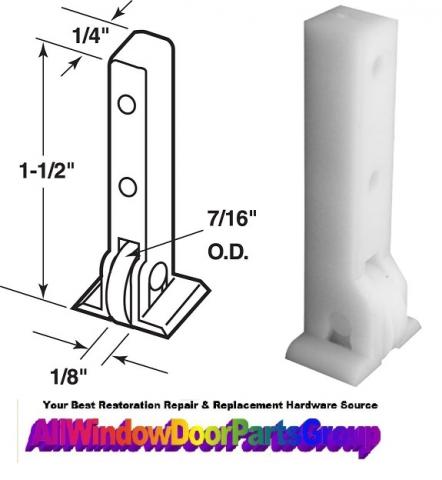 Top of the line products for your old windows and doors - direct from your AllWindowDoorParts GROUP-USA - these sliding window rollers have a 7/16" flat nylon roller; Top notch nylon roller assembly housing with nylon roller - used for sliding windows, horizontal sliders, gliders / gliding window parts;
