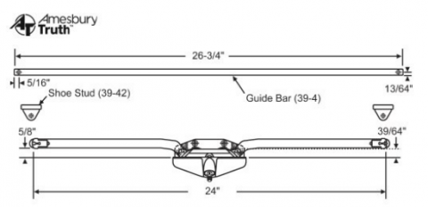 Sill Mounted Style - Awning Window Operator - Model # RL-PRP / 291211 / 2/3/10 and available in several finishes: Black, Bronze, White and Gold. NOTE: You Must Specify Color In The "comment section" at checkout --- IF NONE SPECIFIED - we will send BRONZE. Truth and entryGard Casement and Awning Operators are available in numerous configurations, sizes and models - Guide Bars and Shoe Studs Sold Seperately: 26 3/4" Long Guide Bar Assembly (sold seperately); shoe stud style; 24" Wide Arm length, C to C as shown.