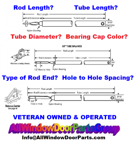 Spiral Tube Balances PRICED PER PAIR - Contractor Pack | Color Coded Bearing Pack - Spiral Type Window Balances as shown below in your specified choice of Red, Blue, Black, White, Yellow Bearing color. 29" to 35" in Tube Length. Many old, obsolete, outdated, hard to find window parts like these. Please Specify 3/8", 1/2", 5/8" or 9/16" tube diameter, tilt or non-tilt style windows.