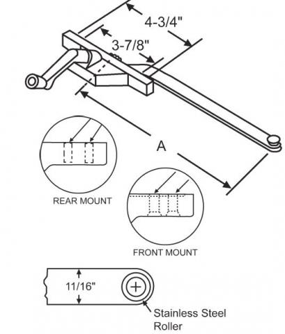 Truth Window Hardware | Stainless Steel Roller Assembly | Front and Rear Mount Single Arm Casement Operator | Arm Lengths 11" Old Styles | All Finishes available, white, Bronze, Clay, Aluminum, Chestnut Bronze and Black.