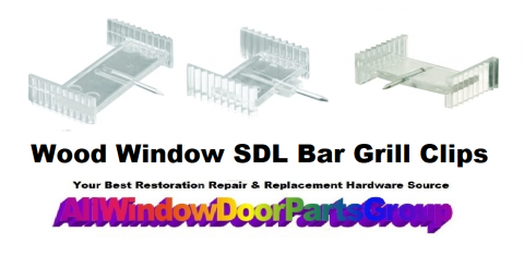 Twelve Pack (12) Window Grill Replacement Retainer Clip Pins - Twelve Each (12) Pack of Window Grill Replacement Retainer Clips with Pins, Clear Plastic Type - window grid snap in clips, window grill retainer clips with pins, clear plastic window grid retainers, grid replacement clips, retainer pins, grid pins and window mullion grid plastic clips. Clear Plastic Clips With Pins for old wood or clad window wood grills. Made of a clear polycarbonate body with a steel needle.