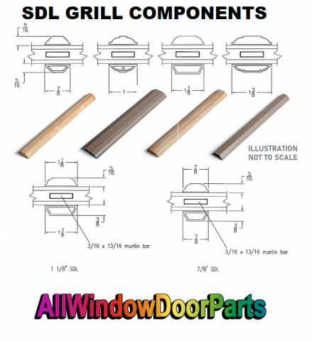 These are 1 3/8" Wide, SDL [Simulated Divided Lite] muntin bars, interior wood window wood grille bars, sash bars and can be used in doors, casement windows and awning windows, Single or double hung or fixed window units. Exterior inside Muntin Bars [grill bars] are used to divide a single window sash into a grid system of small panes of glass, called "lights" or "lites". SDL's are simulated divided lites, normally the wood units are used on inside glass pane surfaces. We also have the exterior types made of aluminum. Please Note - These are Special Order Milled Parts Are Not Returnable.